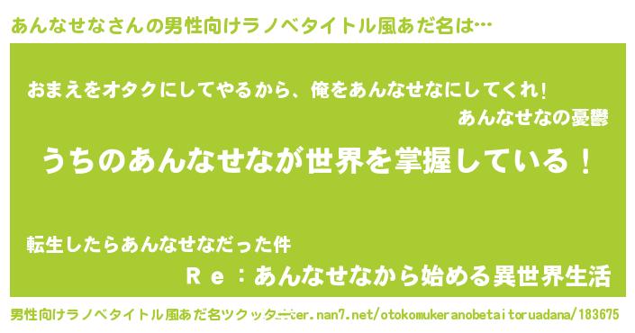| 女子向けラノベタイトル風あだ名 | 『男装あんなせなの憂鬱な任務』 |