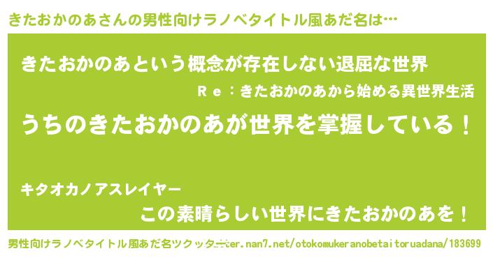 | 胡散臭い通販商品みたいなあだ名 | 『前代未聞の健康食品…その名も「きたおかのあ」』 |