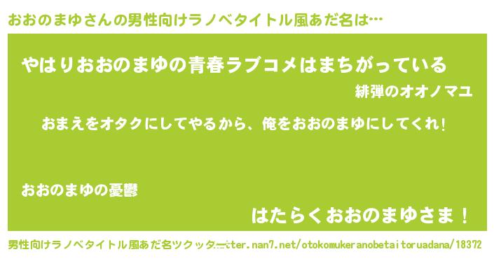 | 女子向けラノベタイトル風あだ名 | 『おおのまゆ夫妻のなれそめ』 |