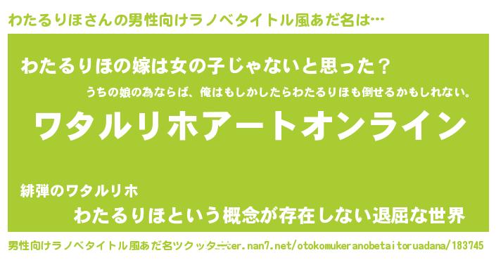 | 胡散臭い通販商品みたいなあだ名 | 『億万長者になれる水晶球…その名も「わたるりほ」』 |