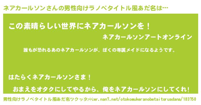 | 意味不明あだ名 | 『永久保存ネアカールソン』 |