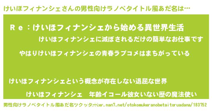| 欧米人風あだ名 | 『けいほフィナンシェクリステル』 |
