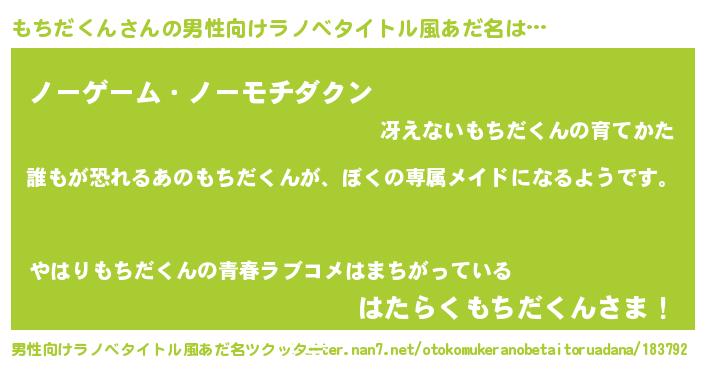 | 意味不明あだ名 | 『永久保存もちだくん』『自称もちだくん』 |