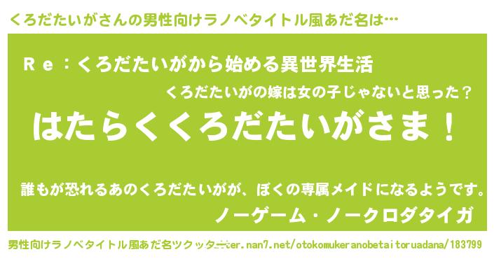 くろだたいがさんの男性向けラノベタイトル風あだ名をツクッター!