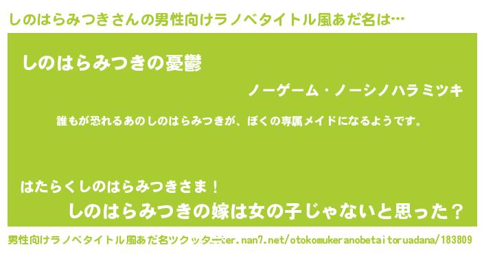 | 意味不明あだ名 | 『永久保存しのはらみつき』 |