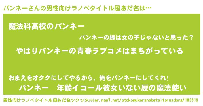 | 意味不明あだ名 | 『パンネーフォーエバー』『自称パンネー』 |