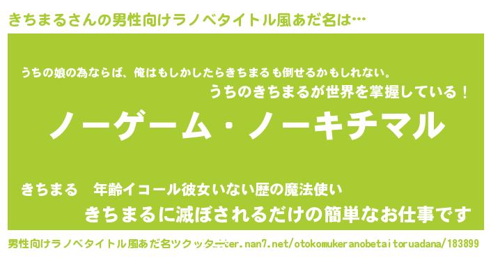 きちまるさんの男性向けラノベタイトル風あだ名をツクッター!