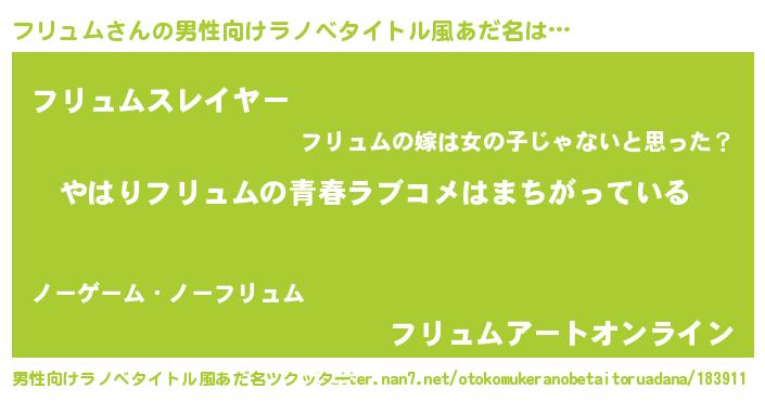 | 女子向けラノベタイトル風あだ名 | 『フリュム伯爵の花嫁』『フリュム恋絵巻』 |