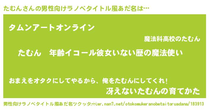 | ヒーロー風カッコイイあだ名 | 『スーパータムン』『サイバー戦士タムン』 |