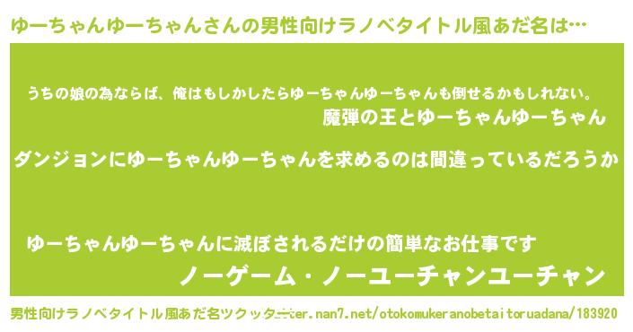 | 女子向けラノベタイトル風あだ名 | 『ゆーちゃんゆーちゃんは平凡を望む』 |