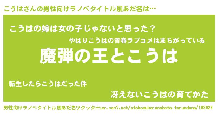 | ヒーロー風カッコイイあだ名 | 『仮面コウダー』『炎刃騎士コウ』 |
