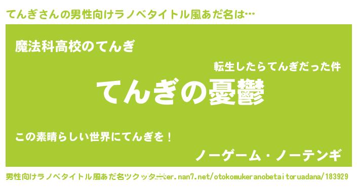 | 女子向けラノベタイトル風あだ名 | 『てんぎ姫と円卓の騎士』 |