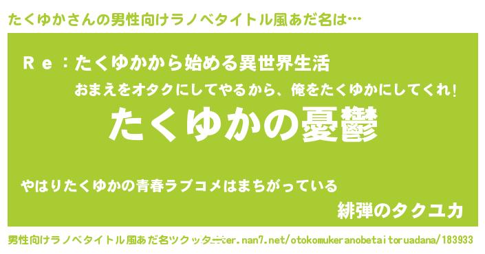 | 女子向けラノベタイトル風あだ名 | 『(仮)たくゆかのやんごとなき事情』 |
