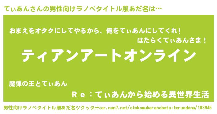 | ヒーロー風カッコイイあだ名 | 『スーパーティアン』『愛の使者てぃあん』 |