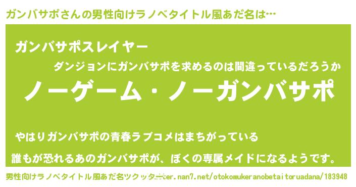 | ヒーロー風カッコイイあだ名 | 『慈愛の使者ガンバサポ』『魔戒騎士ガン』 |