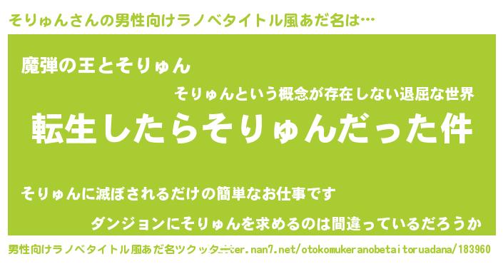 | 胡散臭い通販商品みたいなあだ名 | 『世界中を虜にした限定10本のレアな日本酒…その名も「そりゅん」』 |