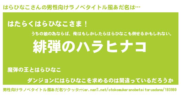 | 胡散臭い通販商品みたいなあだ名 | 『信頼と実績のサプリメント…その名も「はらひなこ」』 |