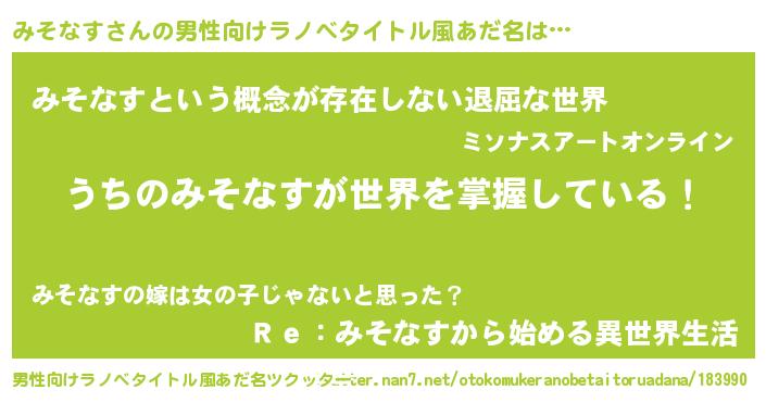 | 意味不明あだ名 | 『永久保存みそなす』『自称みそなす』 |