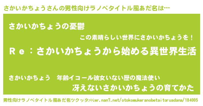 | 意味不明あだ名 | 『自称さかいかちょう』 |