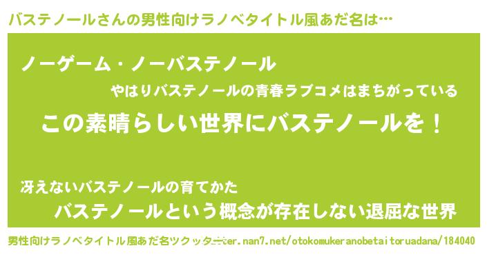| 意味不明あだ名 | 『住所不定無職バステノール(41歳)』 |