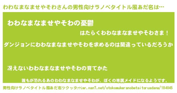 | 女子向けラノベタイトル風あだ名 | 『わわなまなませやそわの卵を拾いまして』 |