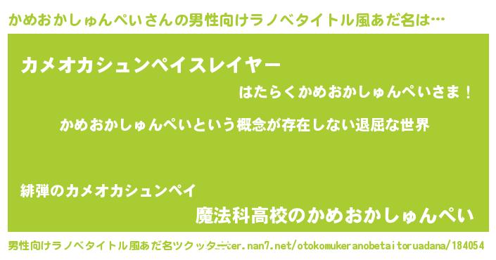 | 女子向けラノベタイトル風あだ名 | 『異世界で失敗しない100のかめおかしゅんぺい』 |