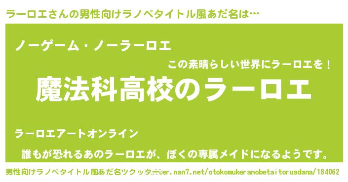 | 女子向けラノベタイトル風あだ名 | 『ラーロエなんてお断りですっ。』 |