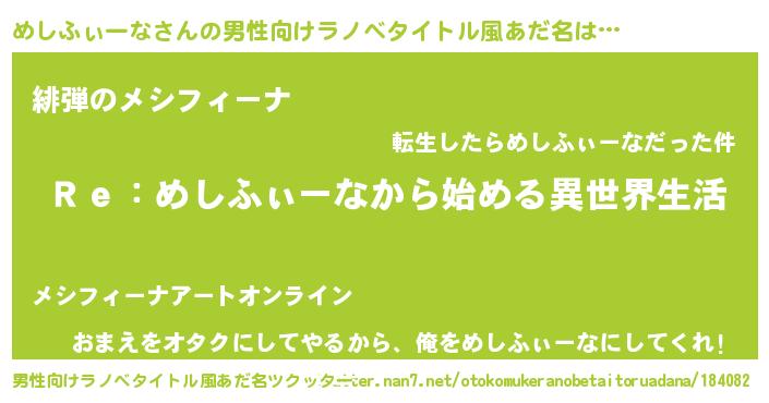 | 女子向けラノベタイトル風あだ名 | 『闇のめしふぃーな』 |