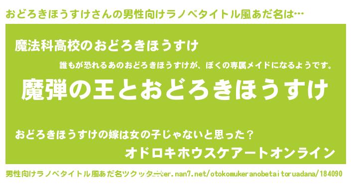 | ヘコむあだ名 | 『おどにゅー』『おどろきほうすけ(笑)』 |