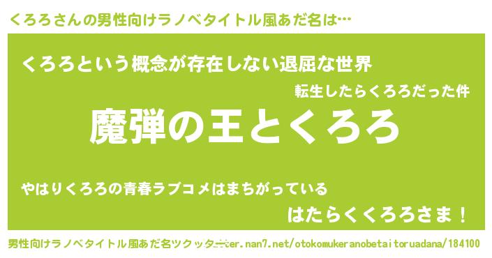 | 意味不明あだ名 | 『住所不定無職くろろ(9歳)』『自称くろろ』 |