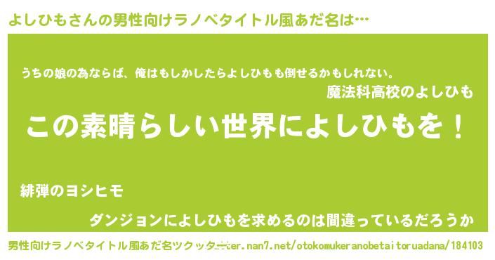 よしひもさんの男性向けラノベタイトル風あだ名をツクッター!