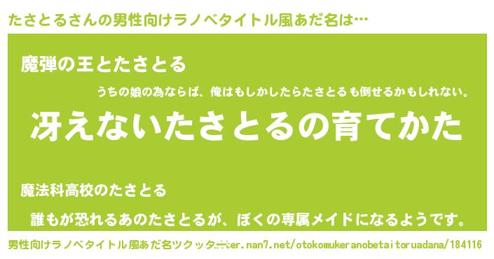 | ヒーロー風カッコイイあだ名 | 『仮面タサダー』『ネオタサトル』 |