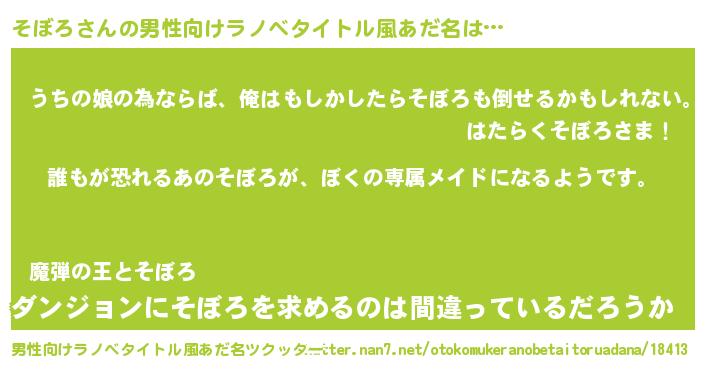 | ファンタジー風あだ名 | 『ソボディッシュ』『エターナルソボロー』 |
