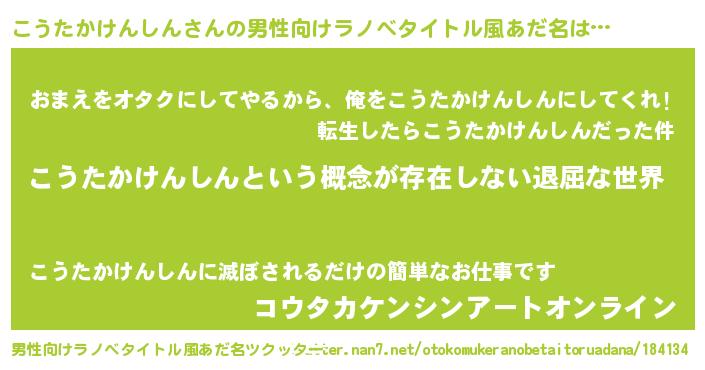 | 意味不明あだ名 | 『永久保存こうたかけんしん』 |