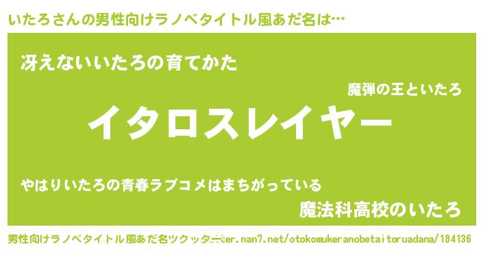 | ヒーロー風カッコイイあだ名 | 『超時空戦士イタロ』『仮面イタダー』 |