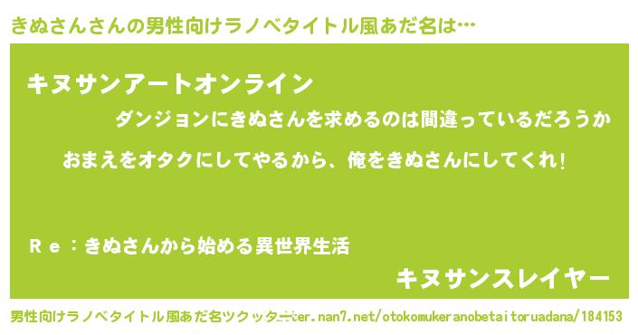 | 欧米人風あだ名 | 『ダニエルきぬさん』『マイケルきぬさん』 |