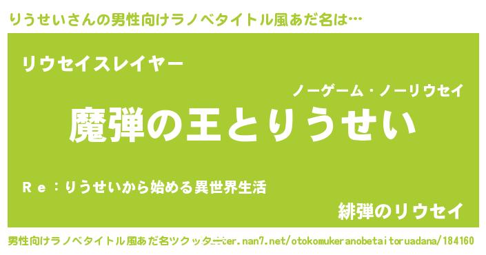 | 女子向けラノベタイトル風あだ名 | 『りうせいが死なない童話 林檎のりうせいの診療簿』 |