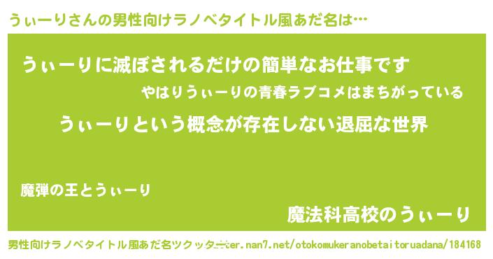 | 胡散臭い通販商品みたいなあだ名 | 『絶対に幸福をもたらす水素水…その名も「うぃーり」』 |