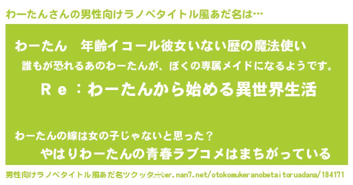 | 肩書あだ名 | 『わーたん閣下』『わーたん上級大将』 |