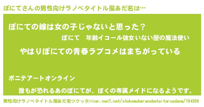 | 伝説のあだ名 | 『秘められし忍者ぽにて』 |