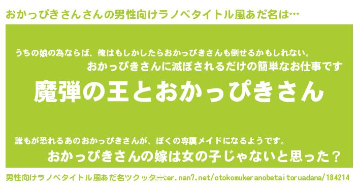 | 意味不明あだ名 | 『住所不定無職おかっぴきさん(13歳)』 |