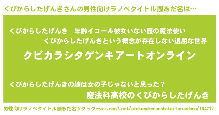| ヒーロー風カッコイイあだ名 | 『スーパークビカラシタゲンキ』 |