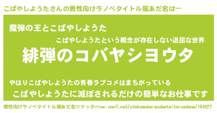 | 意味不明あだ名 | 『住所不定無職こばやしようた(8歳)』 |