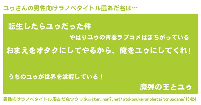 | 胡散臭い通販商品みたいなあだ名 | 『100人中100人が認めた隕石のかけら…その名も「ユゥ」』 |
