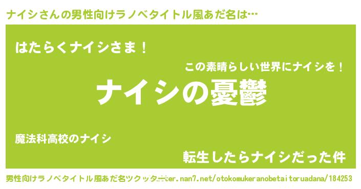 | 胡散臭い通販商品みたいなあだ名 | 『必ず成功する水晶球…その名も「ナイシ」』 |