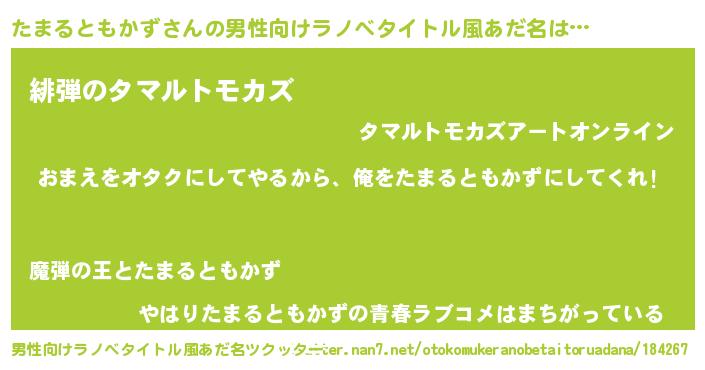 | 女子向けラノベタイトル風あだ名 | 『たまるともかず夫妻のなれそめ』 |