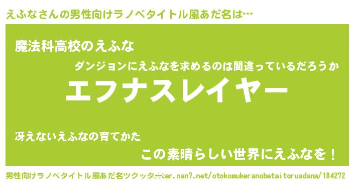 | 意味不明あだ名 | 『めかぶ科えふな属』『自称えふな』 |