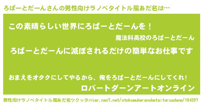 | 胡散臭い通販商品みたいなあだ名 | 『あなたにだけ特別に提供する限定10本のレアな日本酒…その名も「ろばーとだーん」』 |