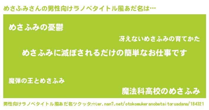 | 胡散臭い通販商品みたいなあだ名 | 『億万長者になれる水晶球…その名も「めさふみ」』 |