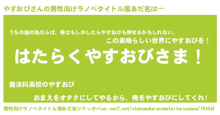 | 胡散臭い通販商品みたいなあだ名 | 『幸せが訪れる高級そうな壺…その名も「やすおび」』 |